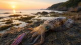 さらに沖(約300m付近)では海鳥が水面をついばむ姿も確認。
